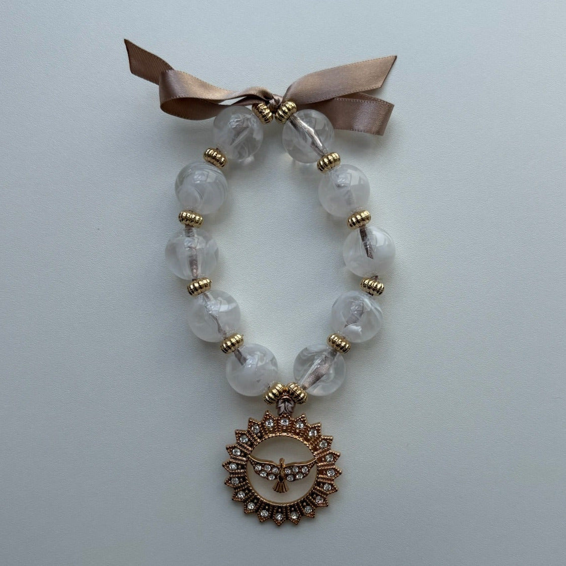 Representação sagrada do Espírito Santo, este pingente fortalece a conexão com o divino e transmite serenidade, sendo um símbolo poderoso de proteção e esperança.
